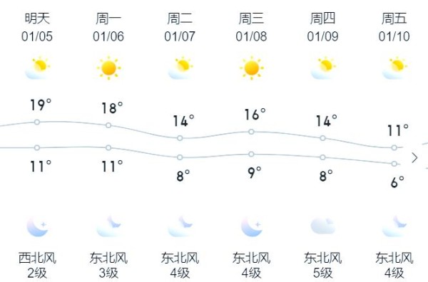 气象资料揭示,当前这种温暖的天气状况不会持久。随着小寒节气的到来,冷空气将迅速占据主导地位。自1月7日起,福清的天气格局将发生转变,气温将显著下滑。最高气温将从20℃降至14℃,同时,夜间最低气温也将略有下调。