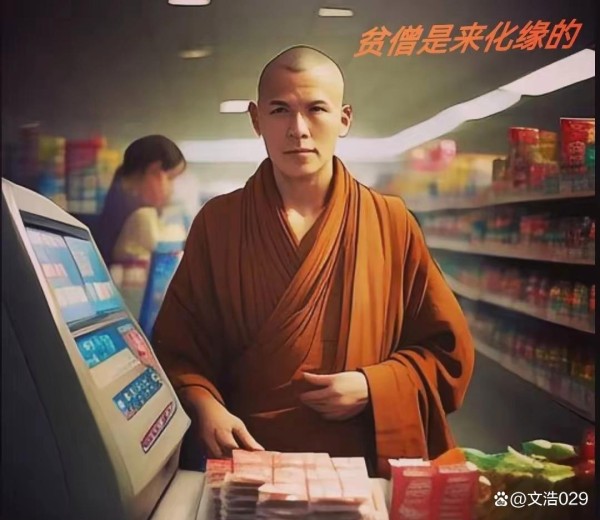 然后,看见他们走到收银台,收银员小姑娘问他们是刷卡还是现金?一个僧人往前跨了一步,说道:“阿弥陀佛,施主,贫僧是来化缘的……”