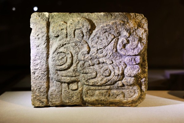 象形文字石板。本次展览的展陈设计极具视觉冲击力。河北博物院艺术设计部文博馆员王铎介绍,展厅里融入了大量玛雅纹饰与建筑符号,从整体的形式设计到文物展托、装饰等细节,整个展厅都能看到玛雅文明的印记。通过用色彩语言与生命之树相结合,直观地呈现了玛雅人的宇宙观念。王铎说,整个展览就像一场“时空穿梭之旅”,希望通过这些设计,让观众在欣赏文物的同时,沉浸式感受到玛雅文明的神秘魅力。