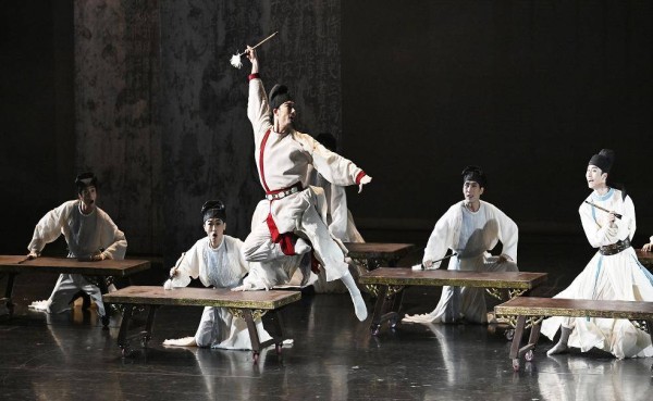“这篇文稿有完整的情感变化弧线,有从平静到爆发的过程,本身就是很完善的戏剧结构。”胡岩说,这部舞剧大胆打破了人物传记传统线性叙事结构,以颜真卿书写祭文时的“回忆”作为主线,分为“润墨”“起笔”“奋笔”“枯笔”“墨尽”五幕,将他的人生境遇、书法艺术与壮烈悲剧交织呈现,正对应了祭文创作中情感的起承转合。
