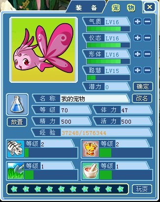 气质属性:使用道具美容香水可以增加宠物的气质属性;