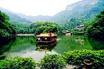 游览景点月城湖 月城湖位于青城丈人峰和青龙岗之间的鬼城山旁,又名月城山,湖因山而得名。源出青城第一峰的清溪水,在这里汇成水面三万平方米的山间小湖。 相传为轩辕黄帝之师、蜀中八仙之首的岷山真人鬼谷隐居处,又传五代孟蜀时,仙人刘海蟾亦在此修炼。月城湖周,青山环卫,画意盎然,碧绿湖水,宛如明镜,四周山谷,倒映水中,朝晖夕阴,云蒸霞披,山姿水色,令人沉醉。堤上有长廊,给人以观景歇憩,品茗怡乐;湖中有游船,供游人逍遥畅游。