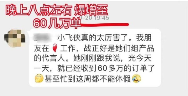 就以这次的“心相印”为例,在肖战官宣官宣代言之后,有消息透露称销售额翻了40倍。而有疑似是内部人员透露肖战代言之后光在9月20日一天就已经收到了60多万的订单,甚至要忙到周末都不能休息。