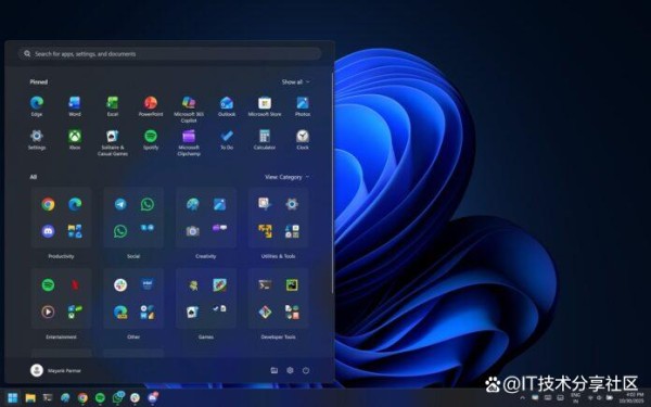 这个新开始菜单并没有比Windows 11原来的开始菜单布局好太多,但肯定也不差。与旧版不同,新版采用了单页布局,所有内容都集中在一页内,分区域显示。