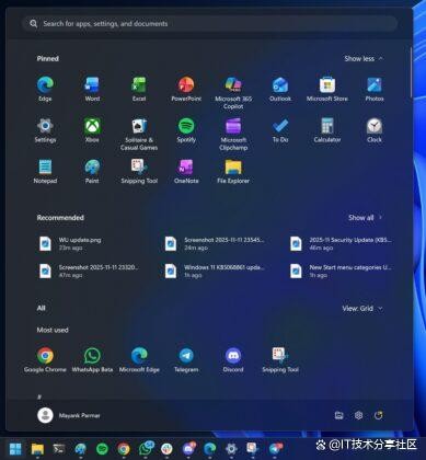 微软已经陆续推送新版开始菜单一段时间了。如果你还没看到它,那在安装Windows 11 2026年1月累积更新(KB5074109)之后,很可能就会遇到了。这是一个强制性更新,目前我手头大多数电脑都已经用上了这个新开始菜单。