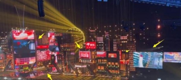 江苏卫视除了率先打出"敢真唱"的"王牌",本届舞美围绕"虫洞"主题展开,主舞台主打"虫洞"与"巨幕"概念,穿越约40米长的隧道,自"虫洞"而来,而未来感十足的"飞碟",悬浮于玻璃结构的四面台之上,犹如从"虫洞"中穿越到现场,带来冲屏而出的视觉感受,用天马行空的创意想法打造颠覆性的视听舞台效果。