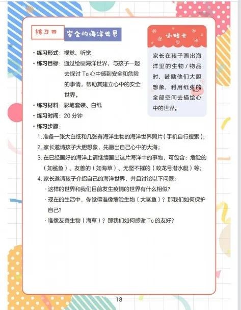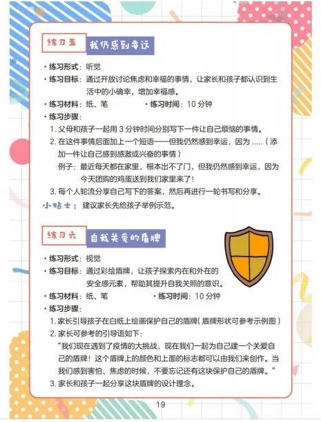 希望本手册能够帮助大家缓解心理压力,获得易操作的练习指南来帮助儿童和自己调节心理状态,重新建立有秩序的生活节奏,在有限空间里创造幸福的生活。
