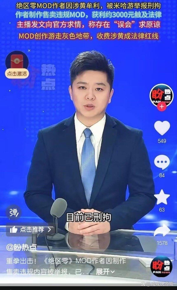 绝区零创作者产出并售卖涉黄mod,被米哈游举报,依法刑拘
