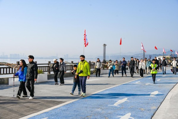 人在路上走,宛如画中游。“我们夫妻都是上班族,今天正好趁着活动带孩子徒步健身,激励自己在新的一年里勇攀高峰、追逐梦想。”来自台州的徒友叶女士难掩激动之情,“希望通过这样的一个挑战方式,在新的一年里有个好彩头。”