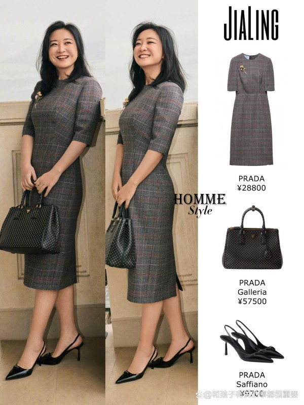 贾玲现身米兰看秀,身穿Prada格子连衣裙,贵妇范很足,没有反弹