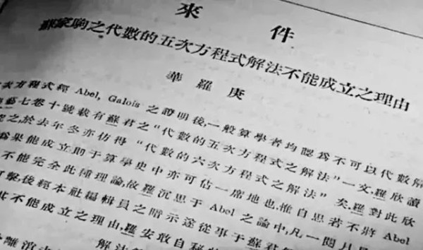 1930年,华罗庚在《科学》杂志上发表了一篇论文《苏家驹之代数的五次方程式解法不能成立的理由》,被清华大学数学系主任熊庆来教授发现,让熊庆来惊奇不已,迅即作出决定:“这个年轻人应该请他到清华来!”这时华罗庚只有21岁,他终于离开了杂货店的“暗室”,来到了北京的清华大学。