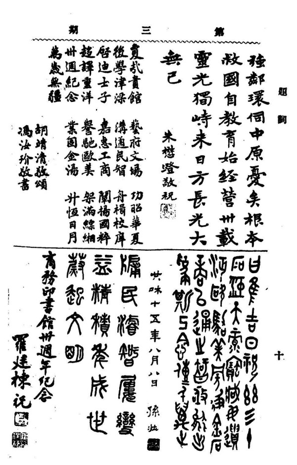 庆祝上海商务印书馆创业30周年的多幅题词(手迹及其释文)