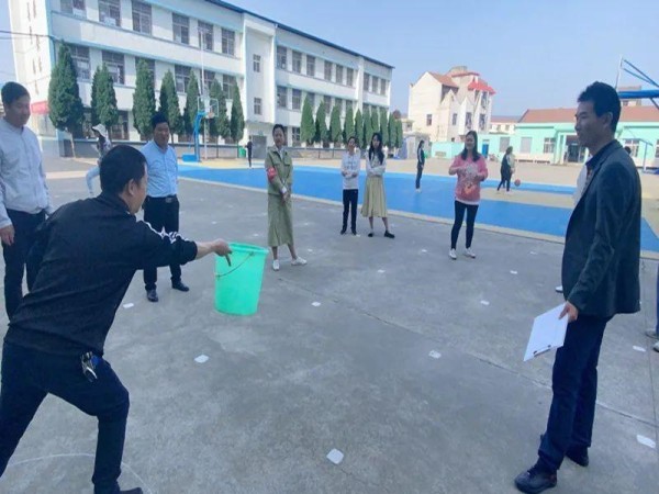 本次趣味运动会由沙小30余名教职工通过抓阄分为4支参赛团队,运动会设置了4个集体项目,分别为:运水接力、蛟龙出海、穿衣接力、拔河。还有4个单人项目:定点投篮、足式保龄、双向投球、套圈。