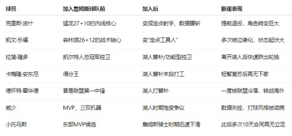 突然发现,当詹姆斯队友的全明星球员,比起只是“数据下降”更严重——是状态大幅下滑、失去原有影响力、甚至过早淡出主流舞台。