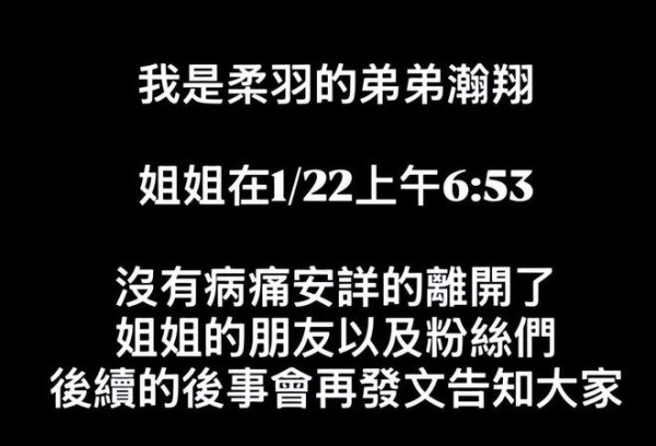 柯柯的弟弟在22日上午,通过姐姐的账号发讣告,内容如下!