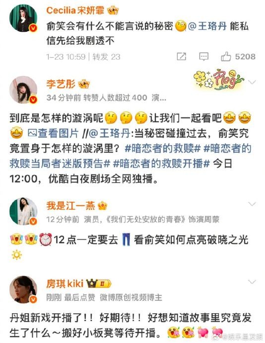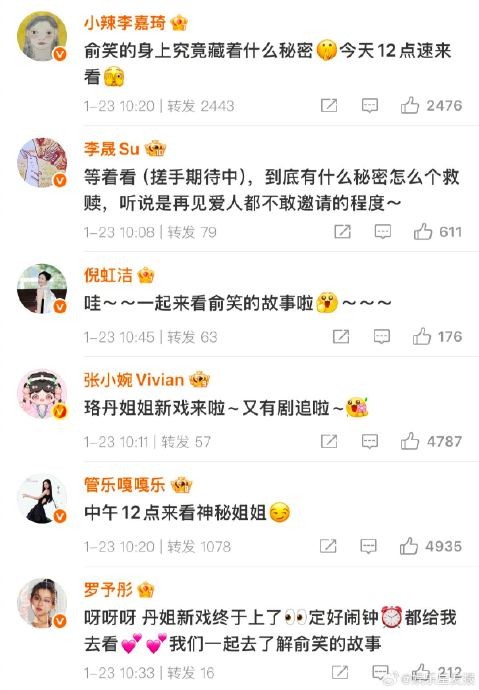 #浪姐6在王珞丹评论区团建# 救命!浪姐6姐姐们集体空降王珞丹评论区,为新剧《暗恋者的救赎》打call,这友情真的太顶了~