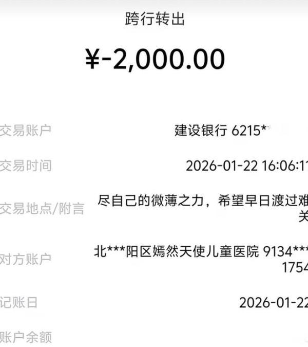 虽然2000元不多,但足以感动无数网友,同样粥饼伦的暖举也帮助到患有唇腭裂的患者。
