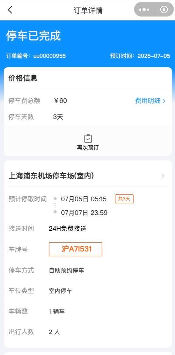 UU停车-浦东机场停车预约信息