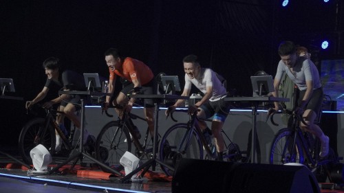 在吴云飞的身后,同样来自ATTACK车队的周克强和李沛林紧随其后。在距离终点还有500米的时候,周克强开始逐渐加速缩短与吴云飞的差距。据周克强在赛后的回忆,最后的300米,脑袋里已经一片空白,眼中只有屏幕上距离终点的距离,200米、100米、50米、10米……大屏幕上,他的表情变得异常狰狞,每一次踩下踏板都伴随着大口的呼吸。终于,在距离终点线不足50米的地方,周克强完成了对吴云飞的超越。一个鲜明的对比是,在冲过终点线后,骑行客户端中虚拟的周克强,从摇车的姿态下,慢慢坐回了车座上。而现实中的他,却因为体力不支,重重倒在了舞台上。根据赛后的数据统计,周克强在整场比赛的最高心率达到了198,而这也创造了他在过去两年赛事中的新高。竞技体育的魅力,从来都是突破人类生理的极限。不夸张的说,决赛中的周克强做到了。