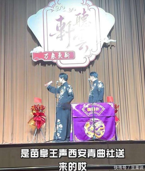 在相声行业里,通常不会出现同一时间、同一城市有多个相声团体轮番演出的情况。然而,听云轩与青曲社的巡演,却在同一天同一时段,同时在南京的两家剧场演出,而且两家剧场相距仅有三百多米。为了表示对彼此的祝福,曹云金与苗阜还互相送去了花篮,彼此的心意通过这简单的仪式得到了传达。