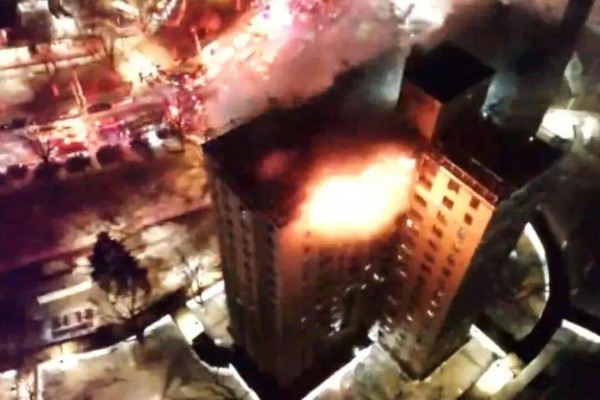 美国纽约一高层公寓顶层发生大火,当地启动最高级别火灾警报