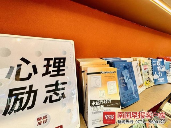 南宁市青秀区一家书店内,心理励志类书籍被放在醒目位置。