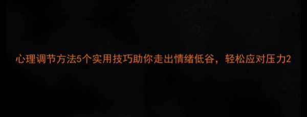 【心理调节方法】5个实用技巧助你走出情绪低谷,轻松应对压力