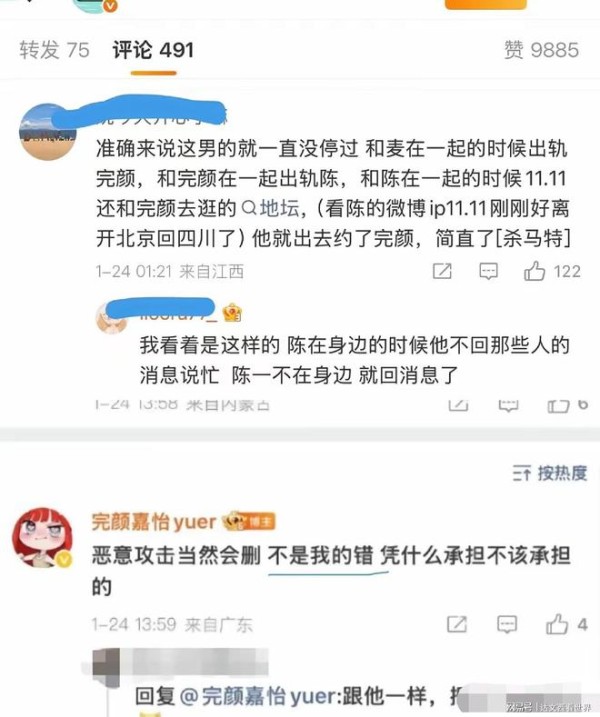 完颜嘉怡的反应也很耐人寻味,火速删除旅游的微博后,发文说不是自己的错,没义务承担网上的恶意。