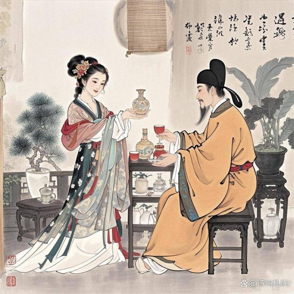 这首词在情感表达上含蓄而委婉。虽未直接点明男女之间的爱情,但通过美人的一系列行为——劝酒、耳语、告知住处,处处透露着她对对方的好感与倾慕,这种若有若无、欲说还休的情感,更具韵味和吸引力,留给读者无限的想象空间。张先的《更漏子》以其独特的艺术魅力,记录下了一场宴会上的美好邂逅。它不仅让我们领略到了词中美人的风姿与情感世界,也让我们感受到了那个时代的浪漫风情,在宋词的长河中散发着别样的光芒。