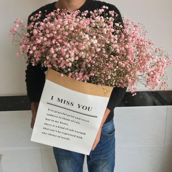 加厚牛皮纸袋的肌理感与干燥花束形成奇妙对比,满天星的星点白絮像是撒落的月光。放在玄关柜或书架旁,瞬间提升空间的故事感。