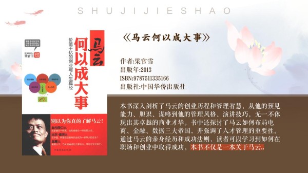 《马云何以成大事》中介绍到, 马云,一个名字如今已响彻全球的商业巨头,他的成功并非一帆风顺。从他的成长经历中,我们可以看到苦难与挫折如何塑造了一个坚韧不拔的创业者。