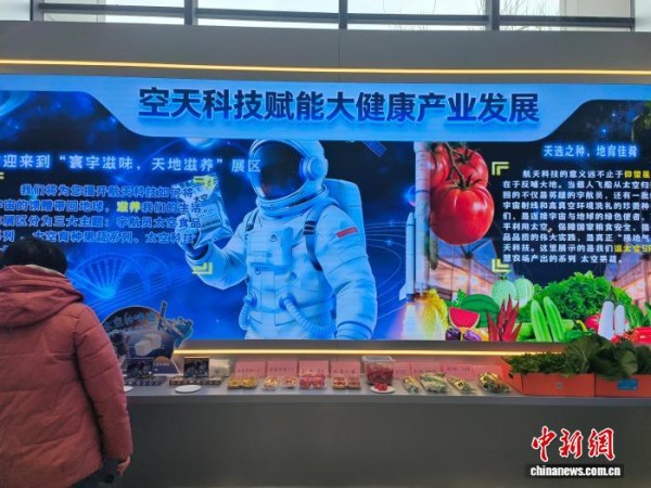 19日,空天科技赋能科技教育与大健康产业协同发展项目路演对接峰会在北京举办,图为“寰宇滋味,天地滋养”展区。主办方供图