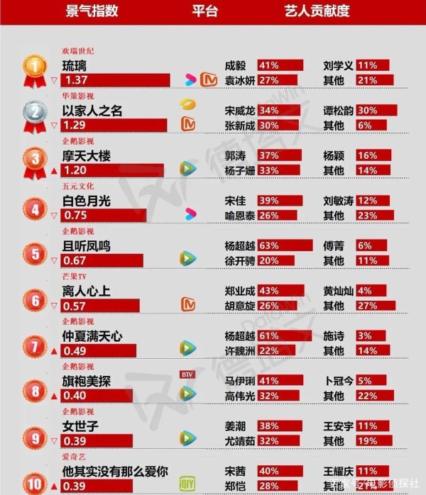 这就是目前十部热播剧的排名,顺序还是很能说明问题的,毕竟好就是好,不好就是不好,你觉得哪部剧最好看?