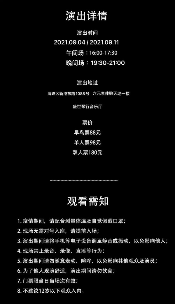 6.本场演出内容、时间、地点、票价以最终出票为准,如有变动我们另行通知。