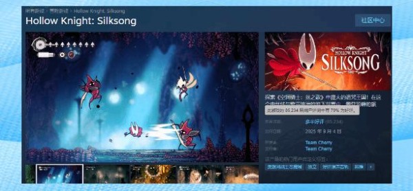 《空洞骑士:丝之歌》自解禁以来,Steam好评率从“特别好评”滑到“多半好评”,仍保79%的高位。