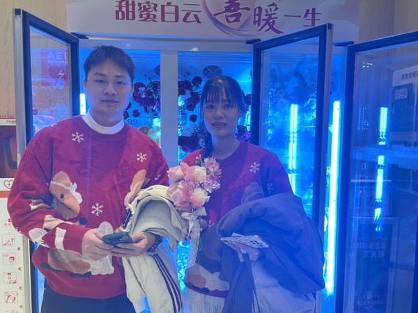 更有趣的是,还有市民群众特意购买鲜花送给当天登记的新人朋友,将这份“甜蜜的善意”作为一份别致的新婚贺礼。选择鲜花、扫码支付、取出花束……简单的流程让公益参与触手可及。