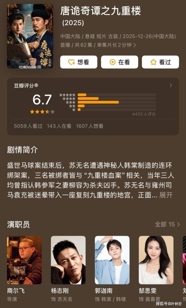 由于是《唐朝诡事录》系列IP的剧迷,所以我抽时间看完了62集的《唐诡奇谭之九重楼》。