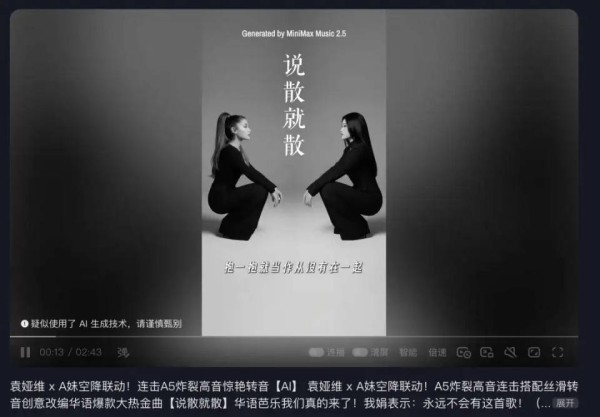 2026年伊始,很多人还沉迷于流量博弈时,国际大厂牌华纳音乐推出了AI武侠虚拟偶像吴爱花,MiniMax推出对标格莱美标准音质的音乐生成模型MiniMax Music 2.5。高阶玩家和专业巨头的入场,拉开了AI音乐下半场的序幕。