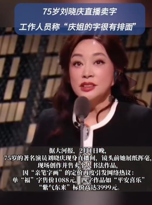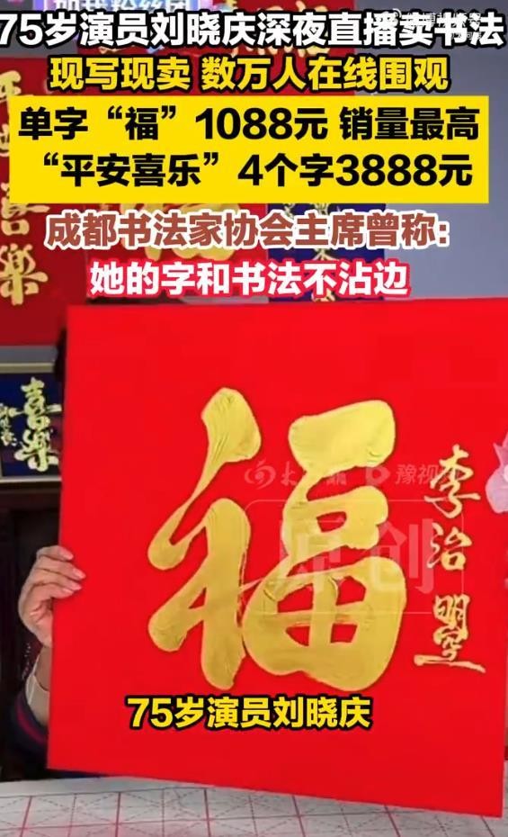 76岁演员刘晓庆直播“卖字”引热议:一张“福”字售价1088元、四字作品3999元已确认!是75岁刘晓庆