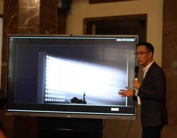 冯远征在讲解舞台设计。