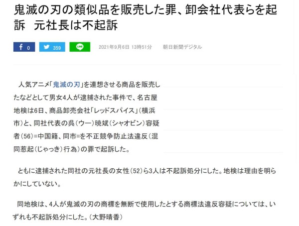 国人在日本贩卖《鬼灭之刃》山寨周边被捕,但最终不起诉处理