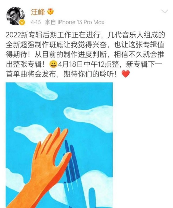 4月17日,汪峰上了热搜,原因是明天将要发布新歌了,网友们纷纷表示期待。