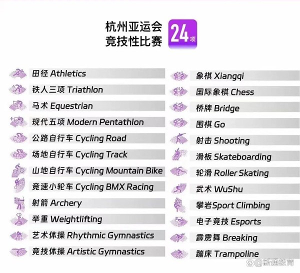 在这篇文章中,小新将和大家探讨杭州亚运会的热门体育项目,了解它们在体育界的重要性,学习各项目的英文表达,一起学起来~