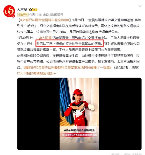 警方正式回应来了!否认金晨涉逃监控视频,相关部门介入,这事麻烦大了