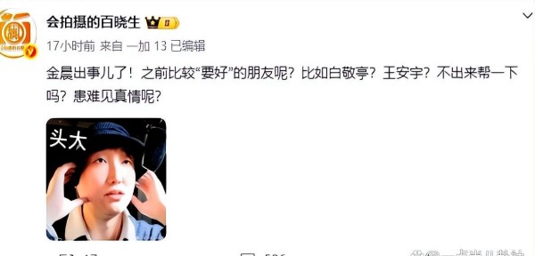 他不仅直接叫嚣金晨本人,还放出豪言壮语,断言金晨已经没有一丁点“翻身”的机会,基本上就是认定了她“必凉”。