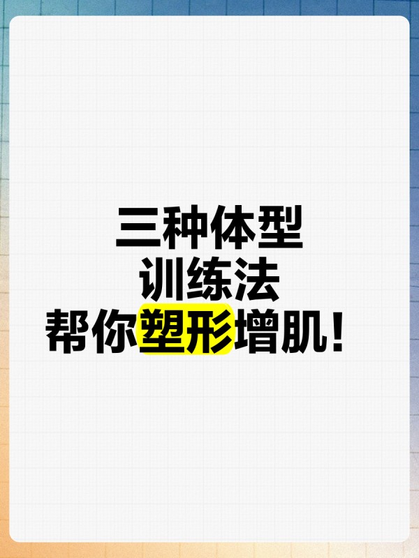 匀称型体型:追求健身健美的人的理想选择。即使不是天生拥有,也可以在健身房通过训练达到。复合式训练动作是基础,分化式训练方法则能帮助改善身体部位。每周3~4天锻炼,每天专注一个部位,如周一练胸肩,周三练腿臀,周五练臂背。穿插有氧和腹肌锻炼,效果更佳。