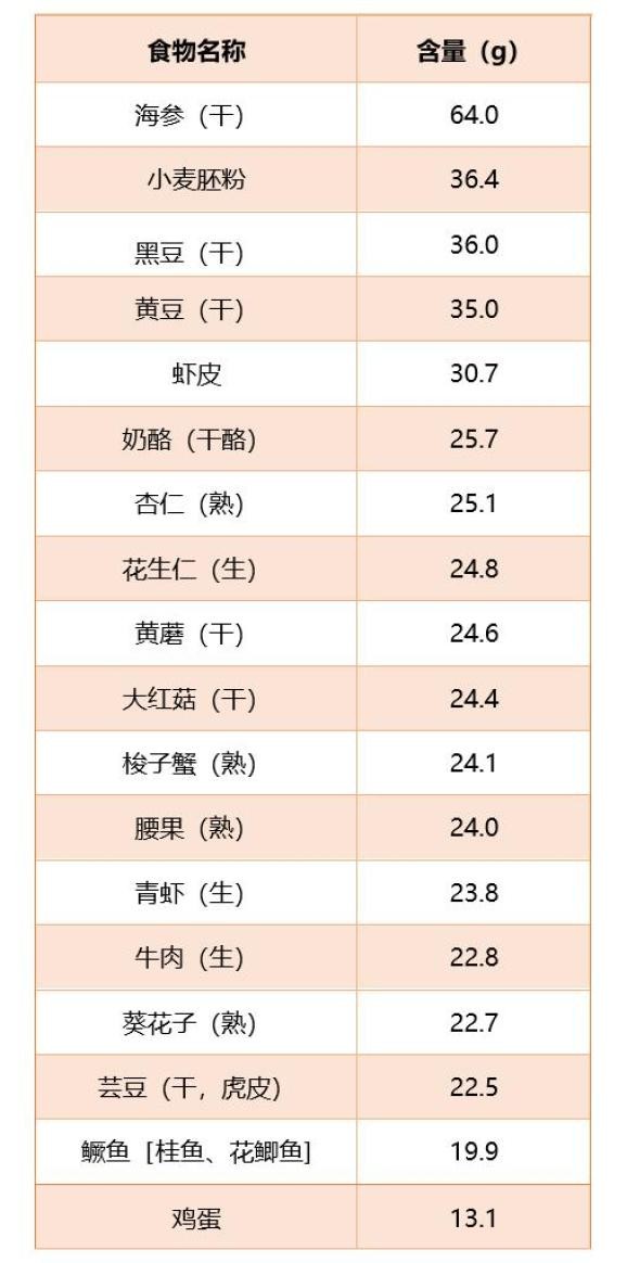 表1 富含蛋白质的常见食物排行榜