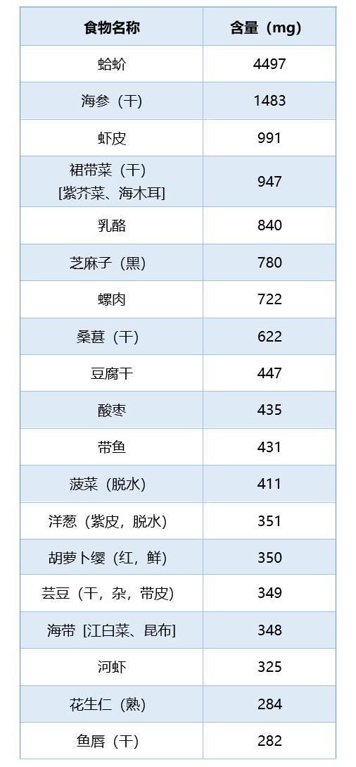 表7 富含钙的常见食物排行榜