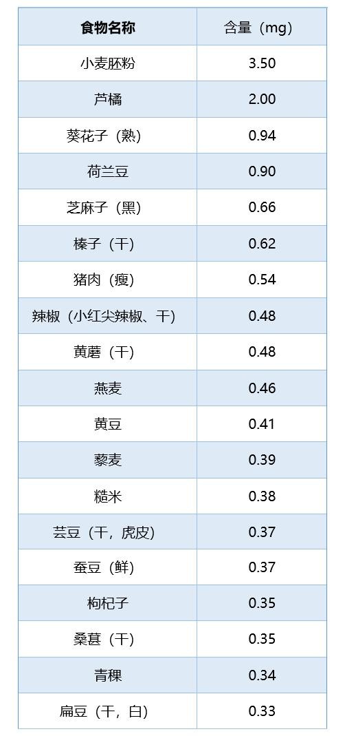 表3 富含维生素B1的常见食物排行榜