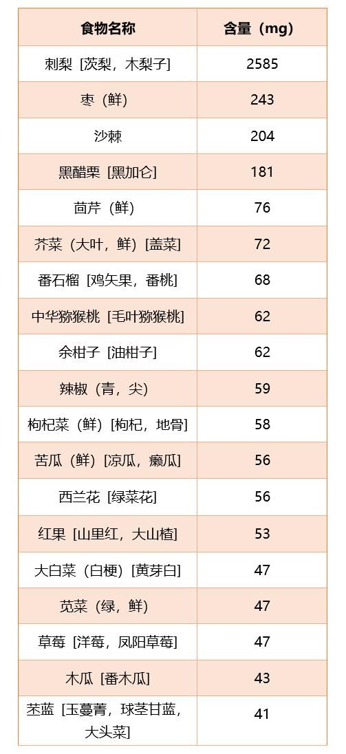 表5 富含维生素C的常见食物排行榜